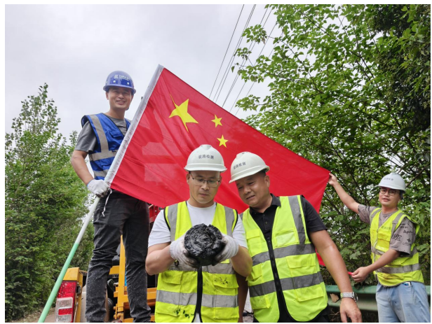此刻該項目的彎沉車也在緊密的沿著蜿蜒的道路進行檢測,檢測人員的笑臉與國旗相互輝映,展現新時代檢測勞動者最美的風采。