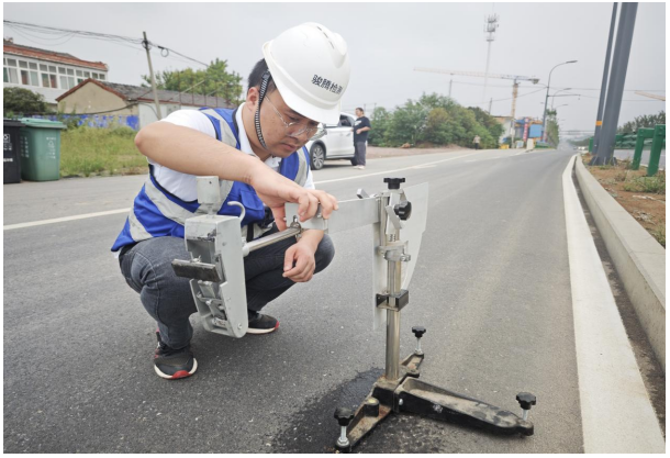 鏡頭流轉,G312項目上的檢測員汪亮文正全神貫注地進行瀝青路面摩擦系數檢測,科學測量用數據助力安全坦途。